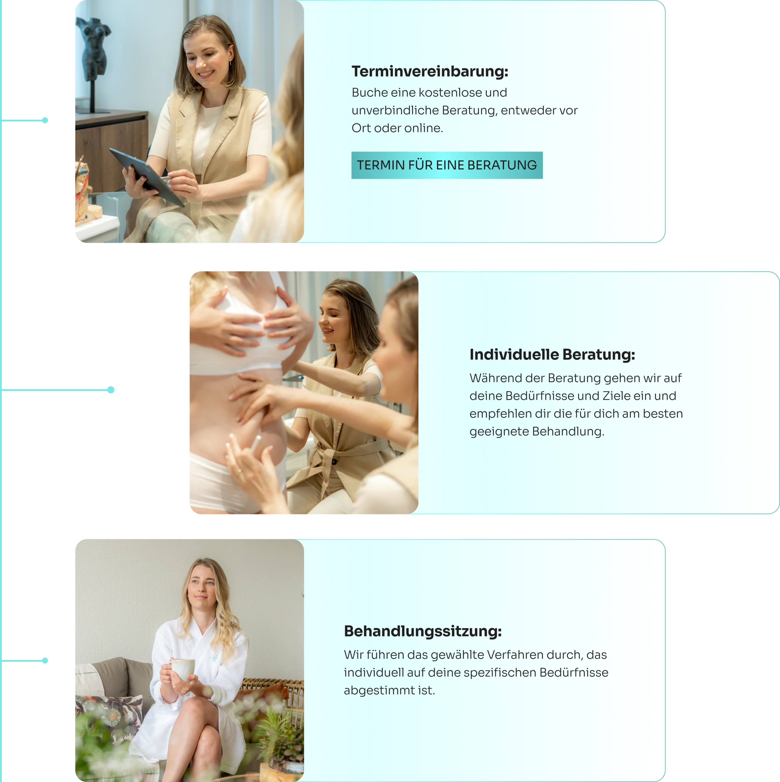Während der Beratung nehmen wir uns Zeit, deine Wünsche und Ziele zu verstehen. Wir erklären dir den Ablauf der Behandlung, besprechen die Investition und erstellen ein individuelles Konzept, das optimal auf deine Bedürfnisse abgestimmt ist.