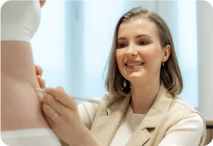 Die Haut zählt zu den empfindlichsten Geweben des Körpers, insbesondere im Bereich von Bauch und Armen. Deshalb analysieren wir gemeinsam sorgfältig deine Hautstruktur und besprechen, ob ergänzende Massnahmen sinnvoll wären.