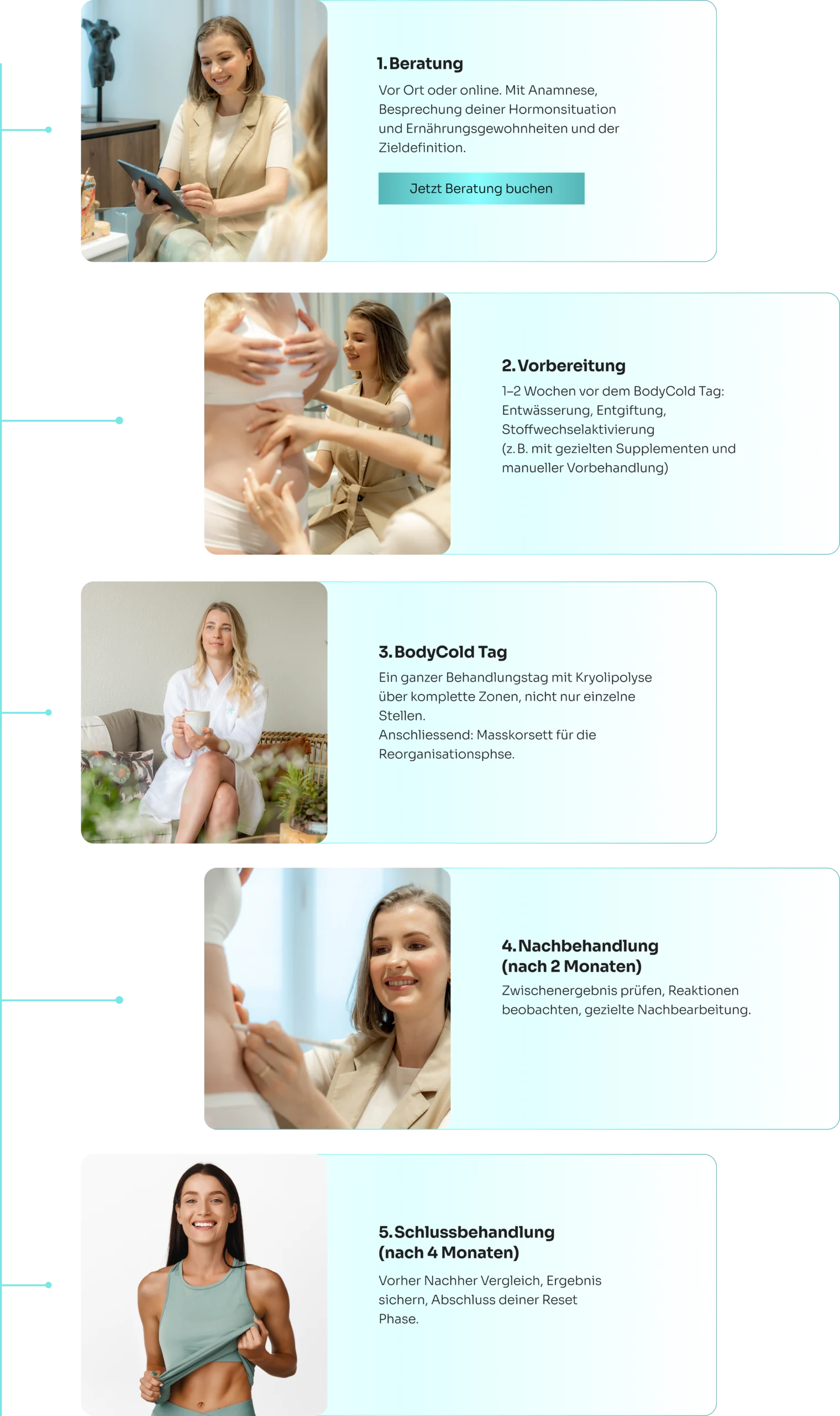 Ja, BodyCold ist in jedem Alter wirksam. Auch bei hormonellen Veränderungen kann der Körper sehr gut reagieren. Der Ablauf wird einfach individuell angepasst.